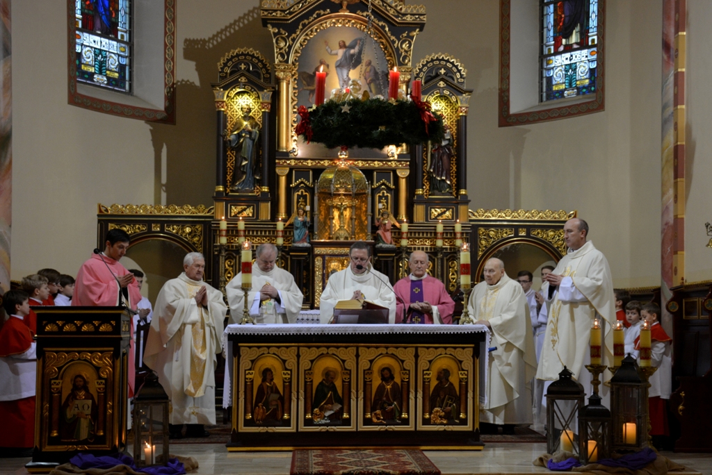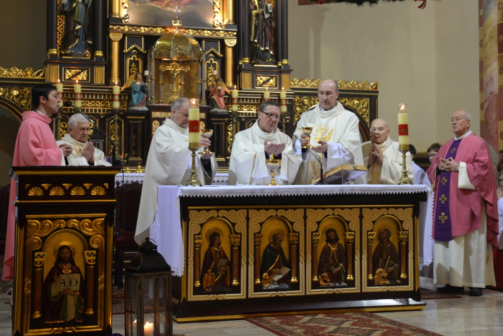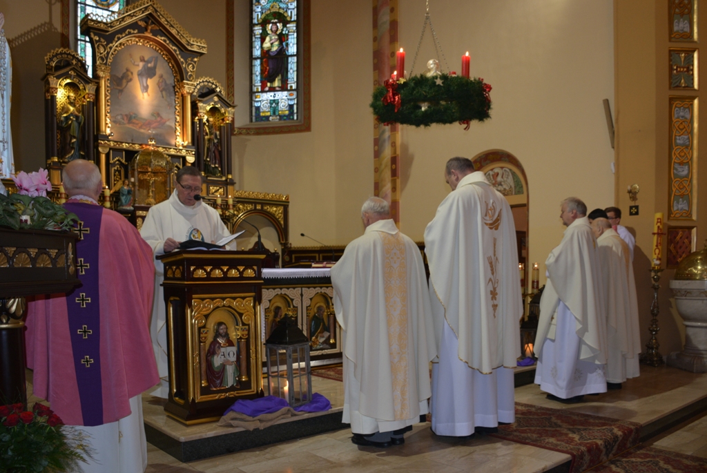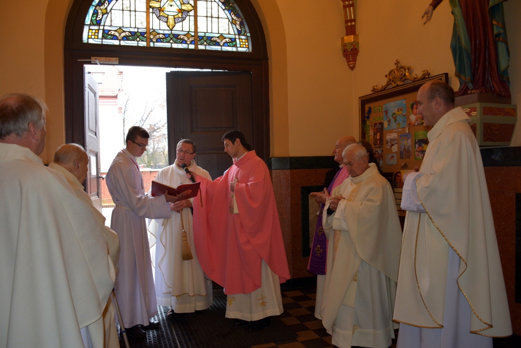 W ten oto sposób w naszej świątyni w niedzielę 13 grudnia 2015r. zostały otwarte „Drzwi Jubileuszowe”. Uroczystości przewodniczył delegat Biskupa Gliwickiego – proboszcz naszej parafii ks. Dziekan Piotr Ciba wraz z Proboszczami pobliskich parafii, ks. Piotrem Sikorą (z parafii pw. św. Mikołaja w Reptach Śl.) oraz ks. Henrykiem Dyką (z parafii w Miasteczku Śląskim).