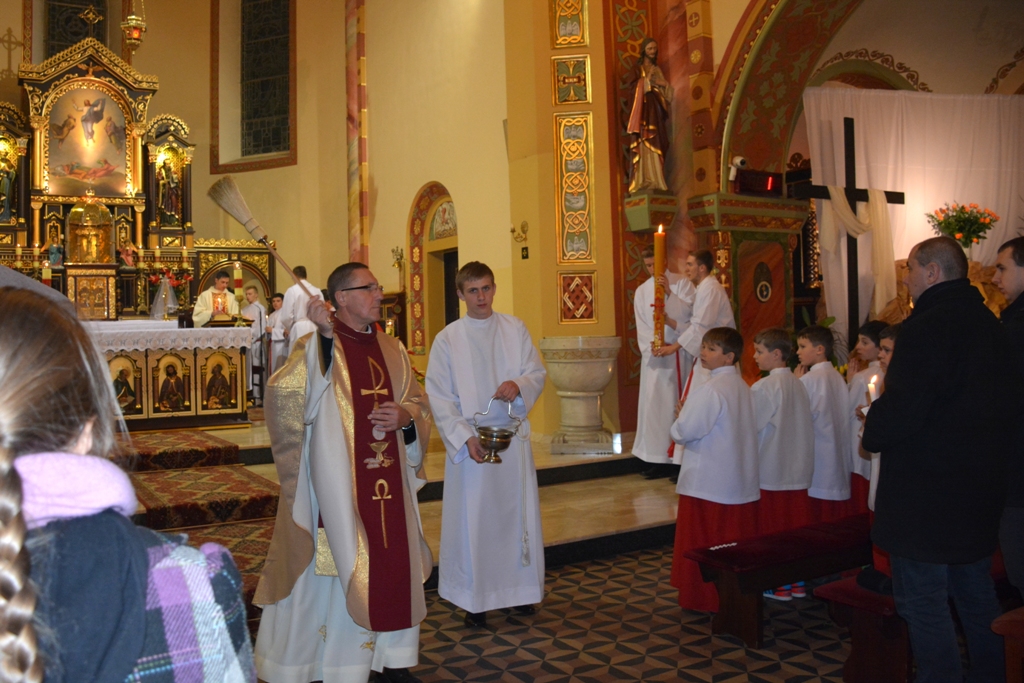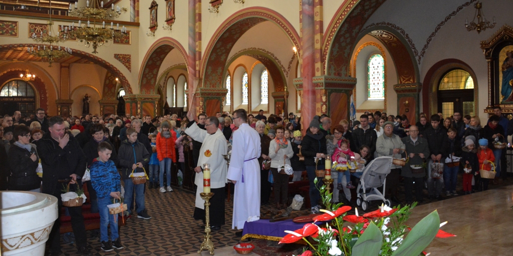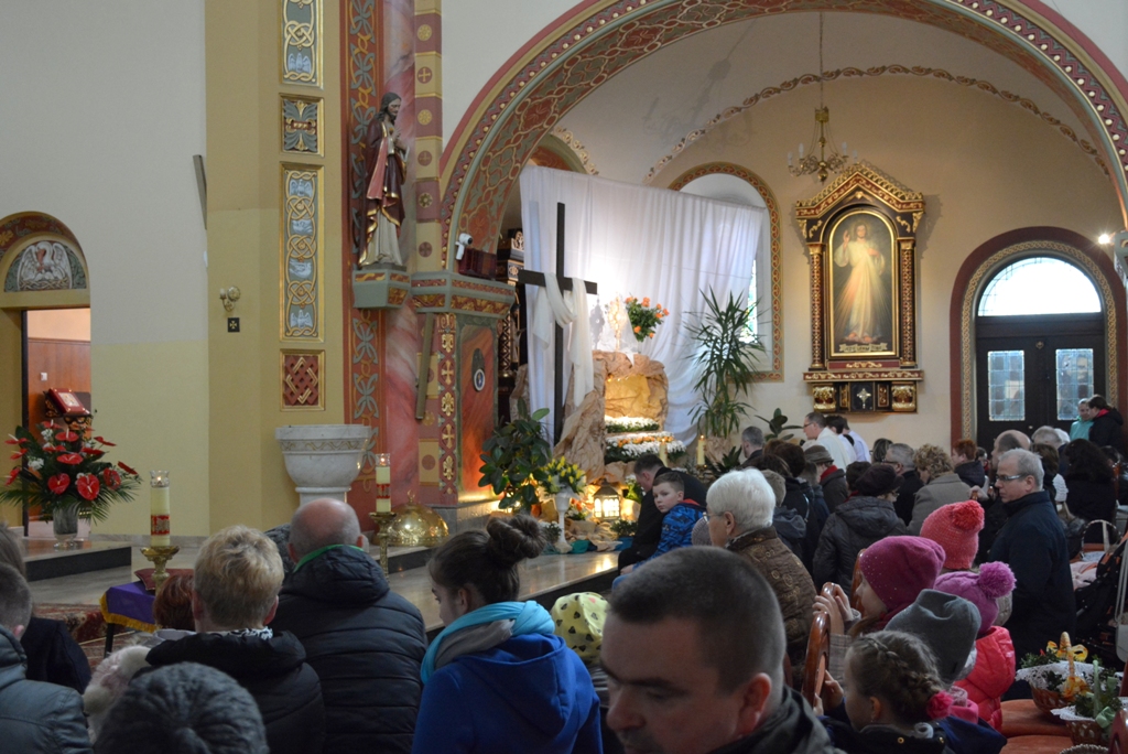 Niedziela Wielkanocna Zmartwychwstania Pańskiego: o godz. 6.00 – Msza św. z procesją rezurekcyjną. Zapraszamy orkiestrę i poczty sztandarowe. Uroczyste nieszpory wielkanocne – o godz. 15.00. Nie będzie w tym dniu Mszy św. o godz. 16.00.