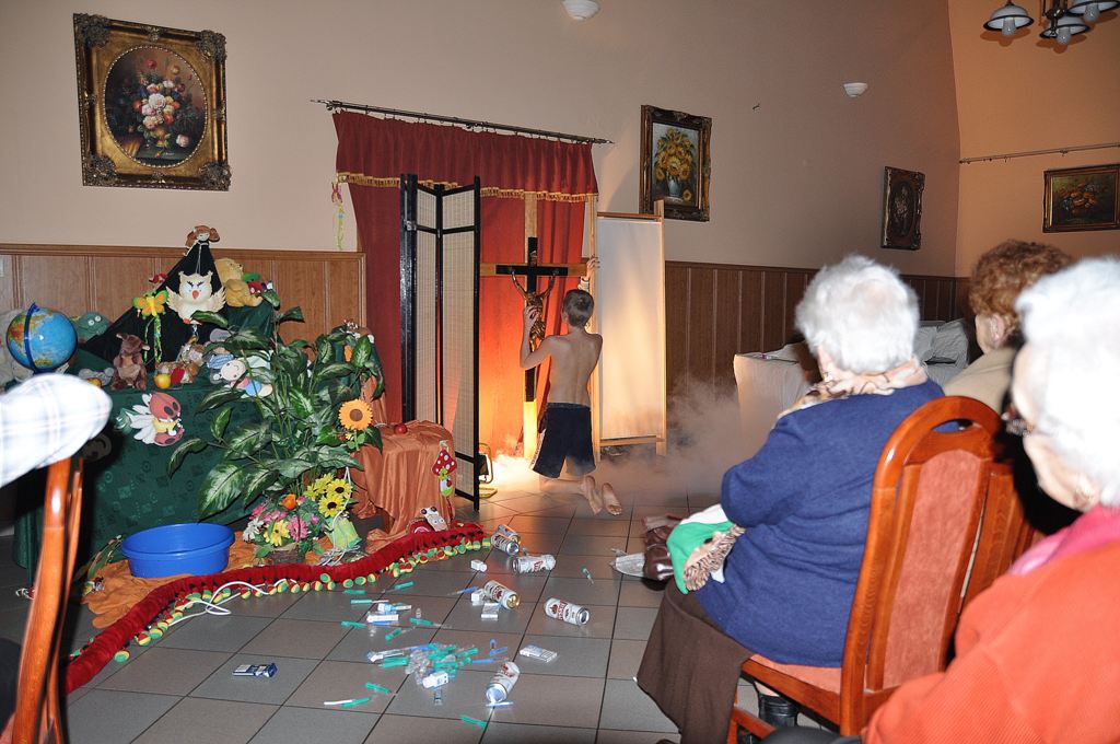 U Seniorów kolejni goście Opublikowano 05-12-2015 Seniorzy gościli dzieci z „Młodzieżowego Ośrodka Socjoterapii w Wojskiej „, prowadzonego przez Siostry ze Zgromadzenia Córek Bożej Miłości. Młodzież przedstawiła sztukę pt. ” Nikt cię nie kocha tak jak Ja”.